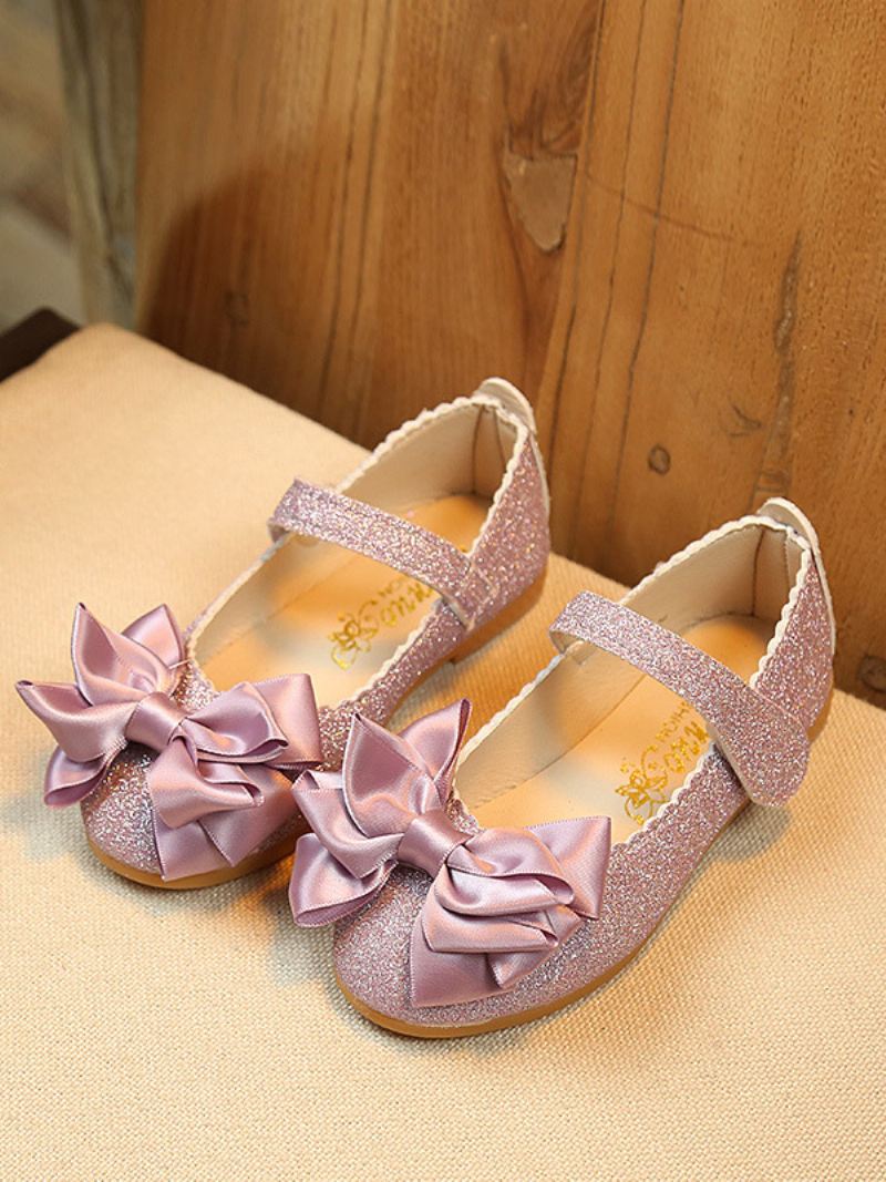 Bloemenmeisje Schoenen Paarse Stoffen Strikken Feestschoenen Met Lovertjes Kinderen