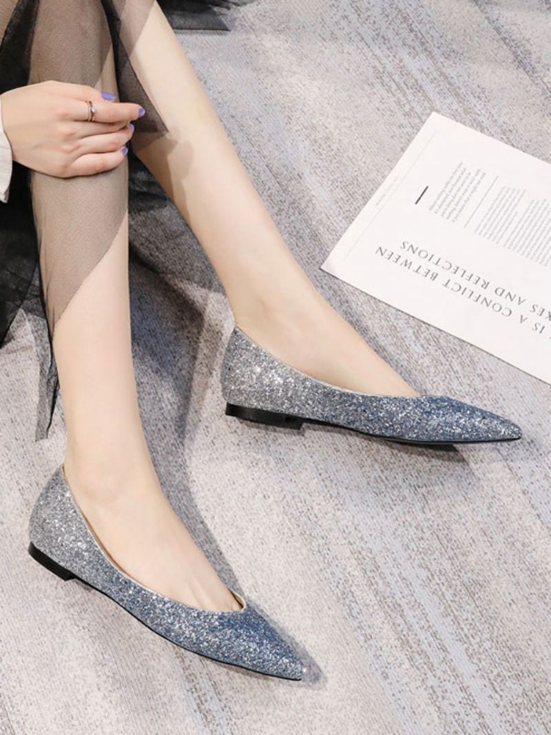 Blonde Balletschoenen Dames Met Lovertjes Puntige Neus Gouden Dagelijkse Vrijetijdsschoenen
