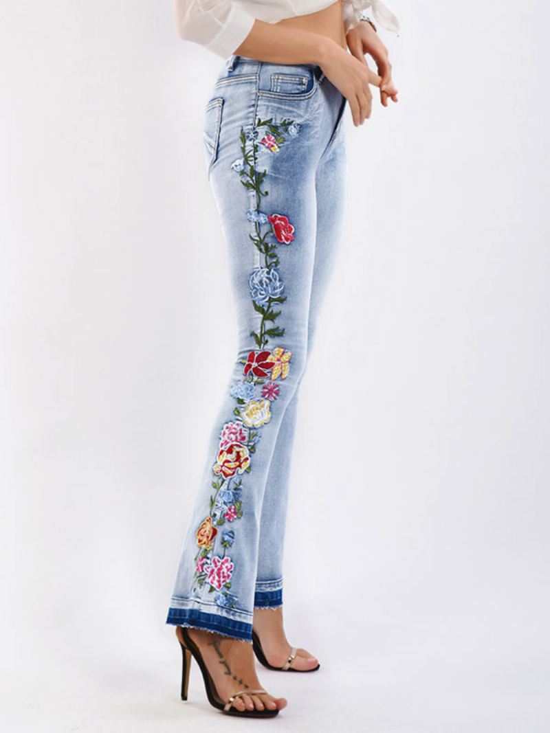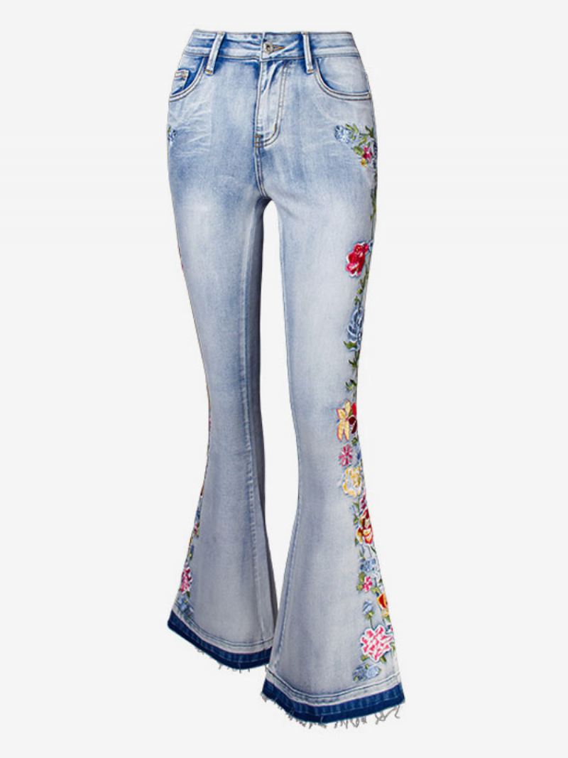 Bootcut Jeans Dames Halfhoge Geborduurde Flare-broeken