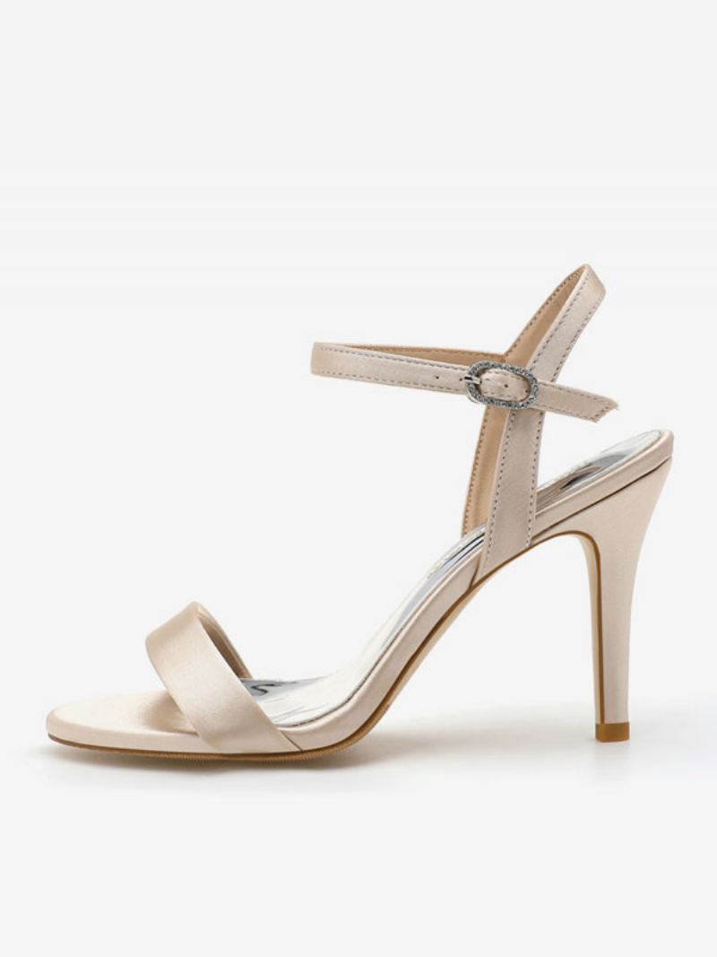 Bruidsschoenen Dames Satijnwit Open Neus Metalen Details Met Naaldhak