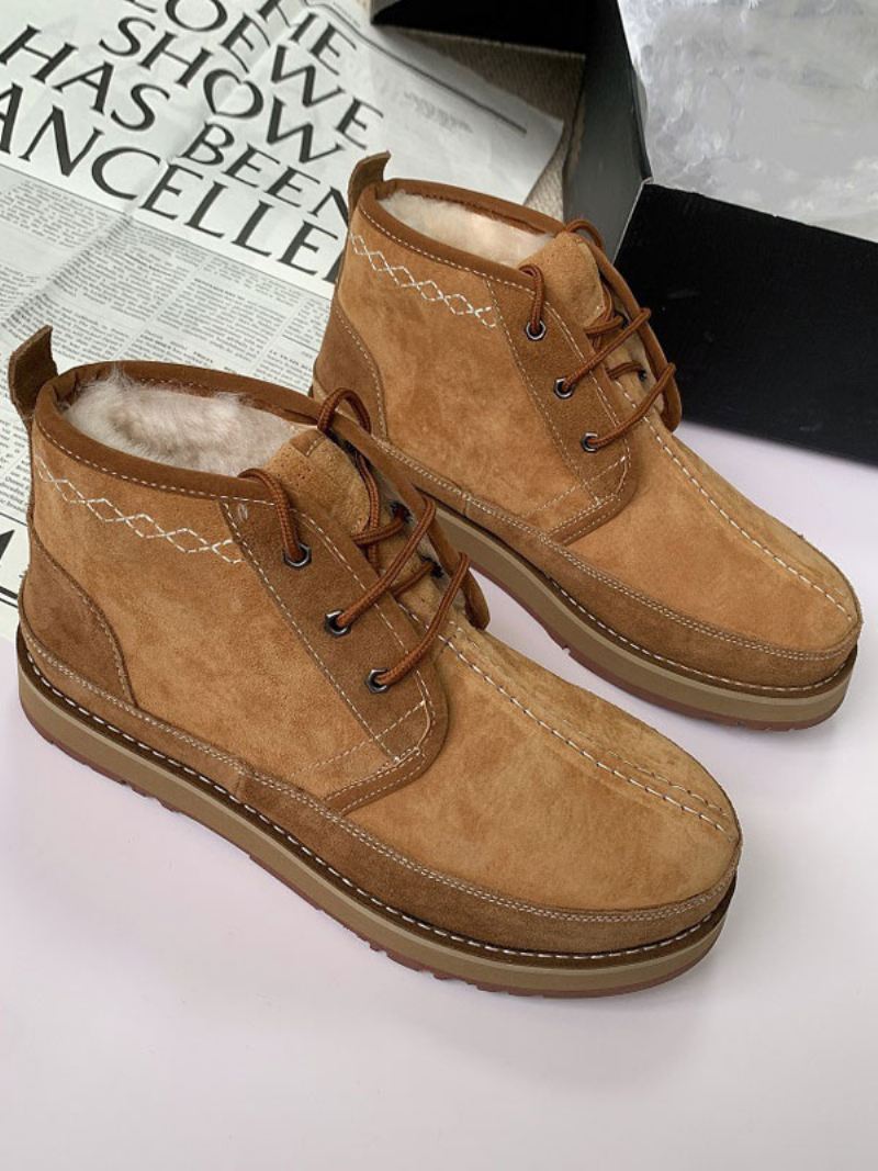 Chukka-sneeuwlaarzen Heren Suède Enkellaarsjes Met Ronde Neus Veters