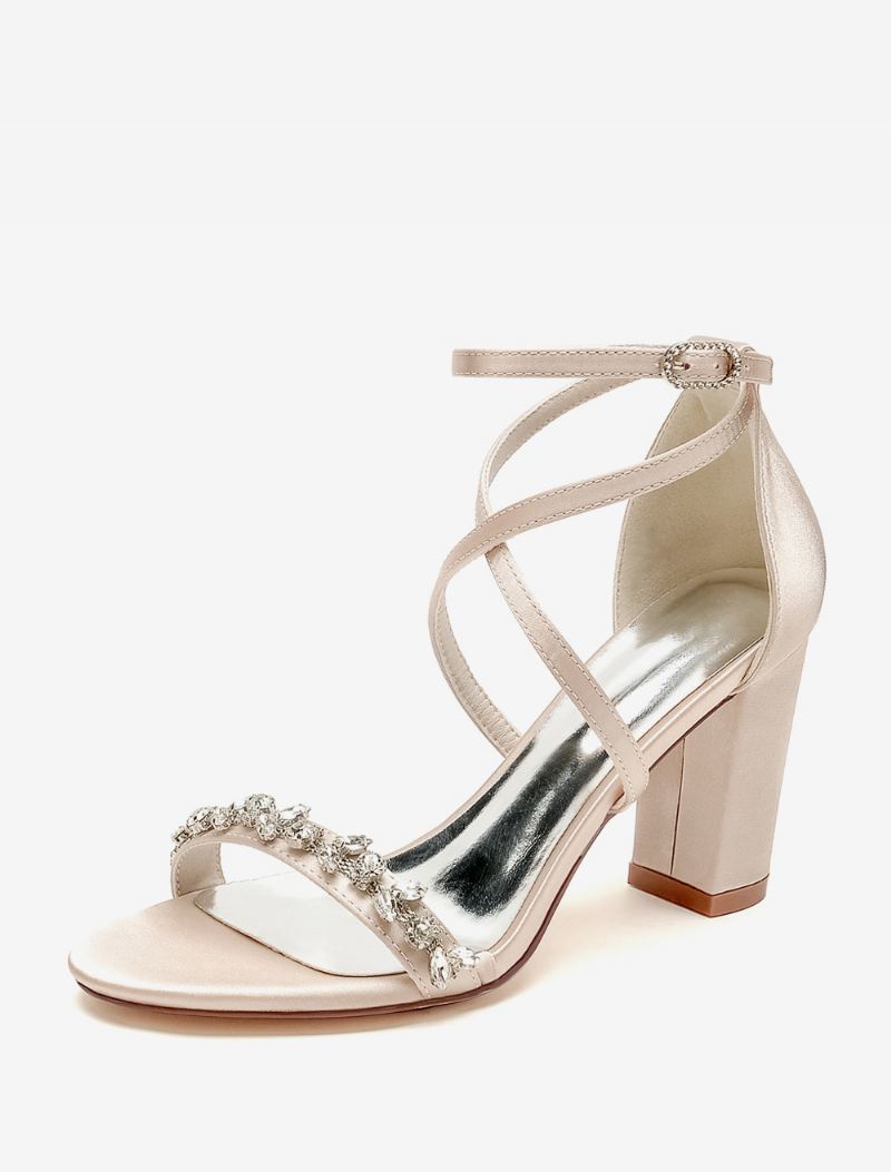 Dames Bruidssandalen Wit Satijn Sexy Open Teen Strass Bruiloft Sandalen