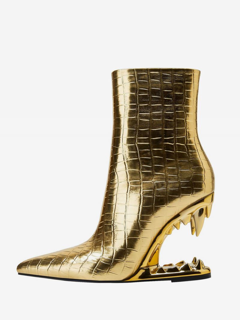 Dames Enkellaarzen Met Gouden Puntige Neus Ontworpen Laarsjes Sleehak
