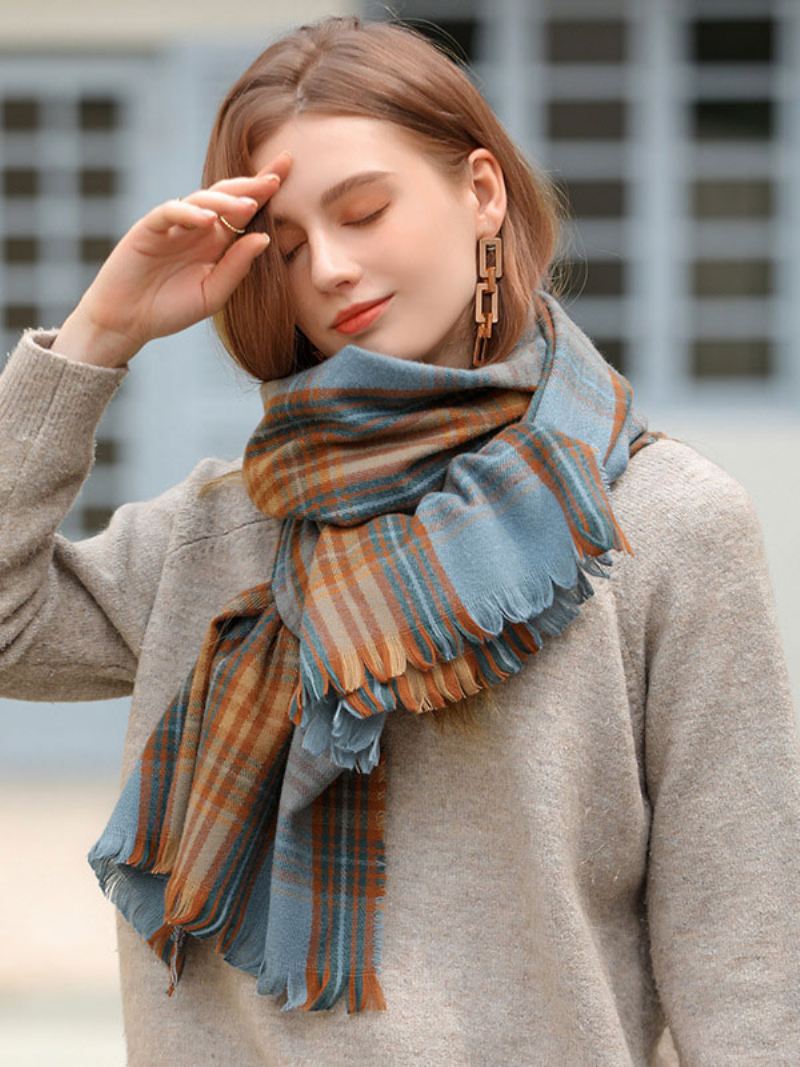 Damessjaal Aantrekkelijke Geruite Franjevezel Winterwarme Lange Sjaals