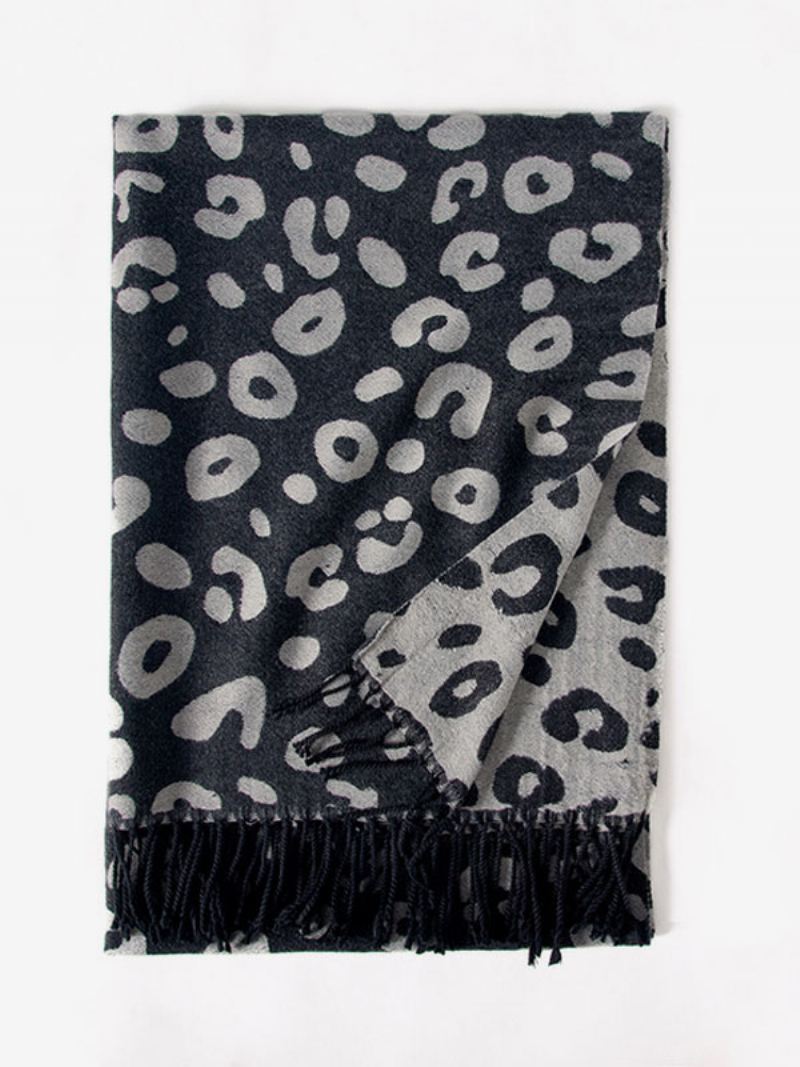 Damessjaal Mode Luipaardprint Fringe Fiber Winter Warme Sjaals