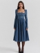 Donkerblauwe A-lijnjurk Dames Vierkante Hals Rugloze Lange Mouwen Midi-dagjurken
