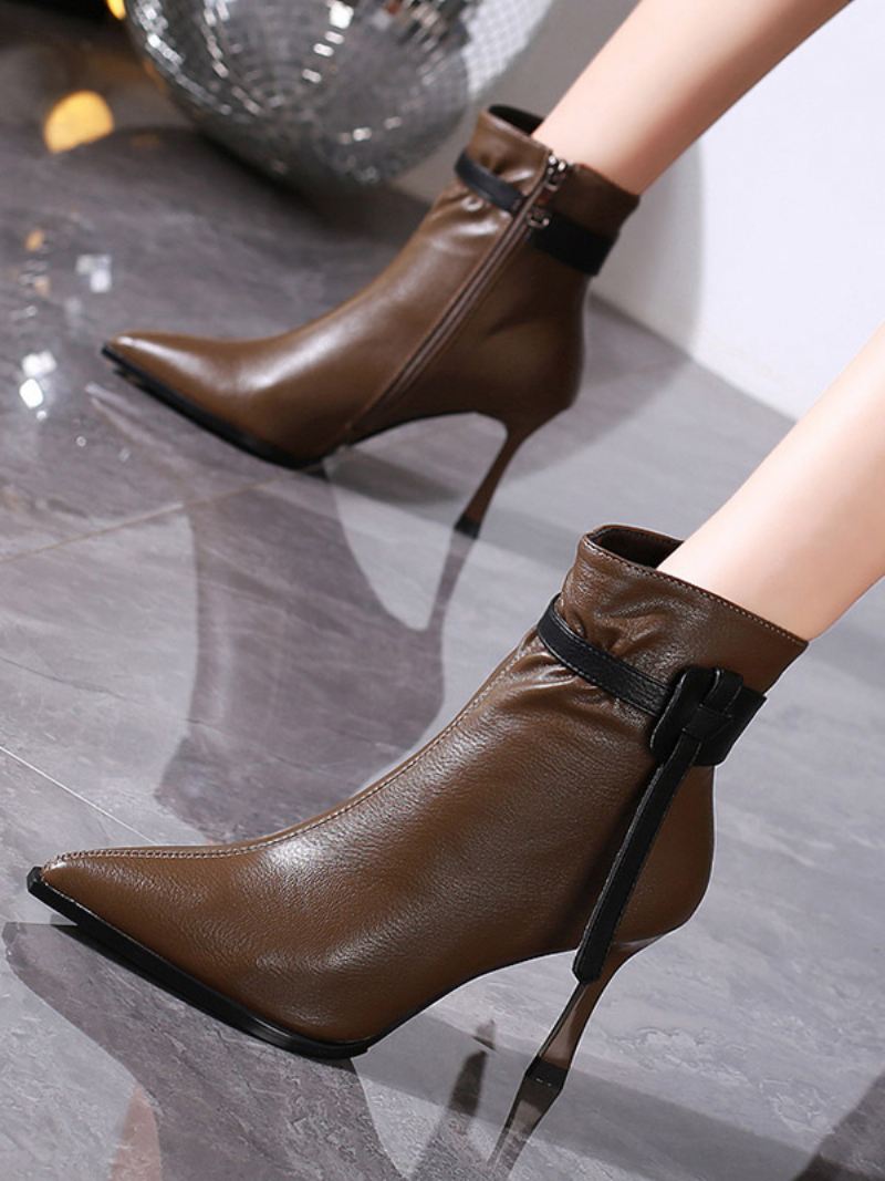 Enkellaarzen Pu-leer Met Puntige Neus Stilettohak Dames