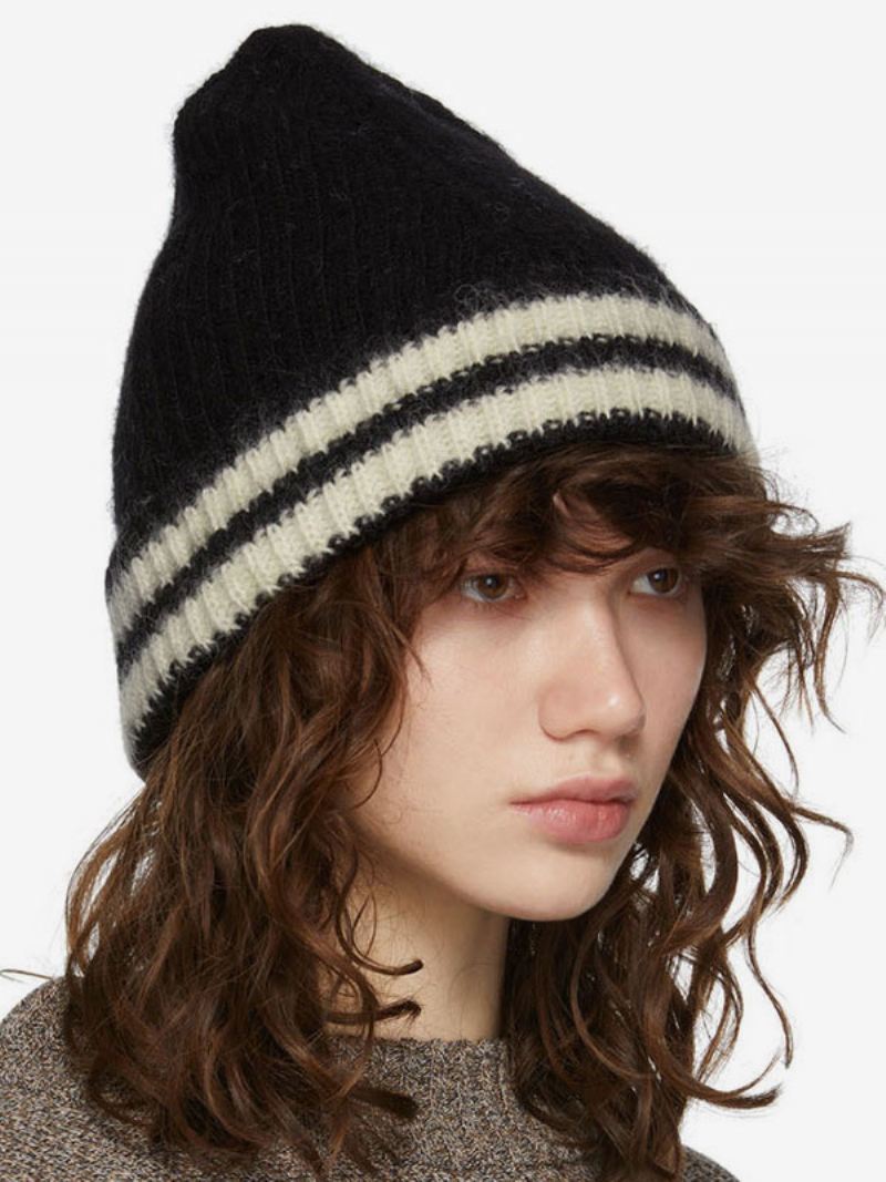 Grijze Gebreide Streephoeden Dames Fantastische Warme Wintermuts Met Strepen