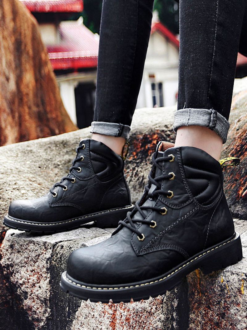 Heren Enkellaarzen Mode Pu-leer Ronde Neus Veterschoenen Zwarte Martin-laarzen