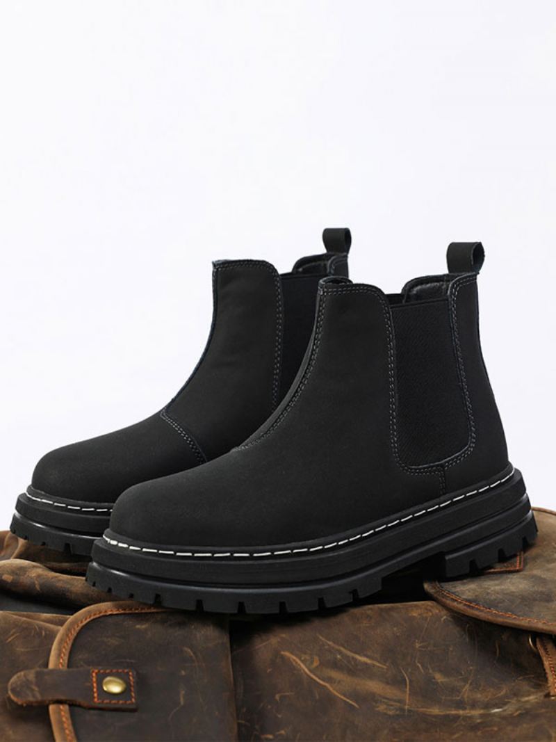 Herenlaarzen Chelsea-laarzen Geel Pu-leer Enkellaarsjes Met Ronde Neus