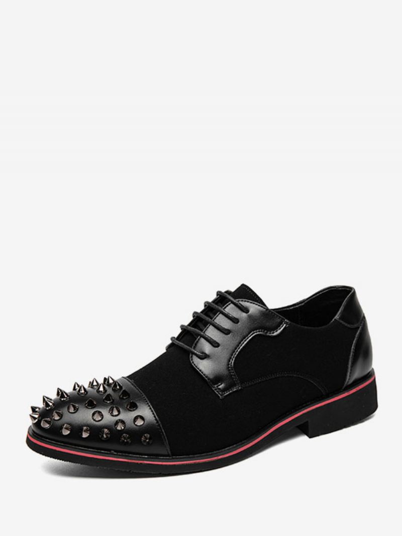 Herenschoenen Stijlvolle Ronde Neus Klinknagels Pu-leer Met Veters