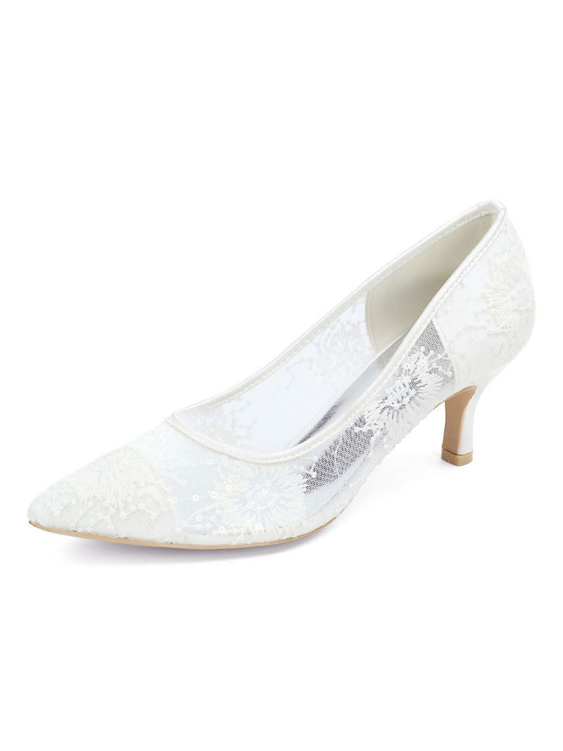 Kanten Bruidsschoenen Met Kittenhak Dames