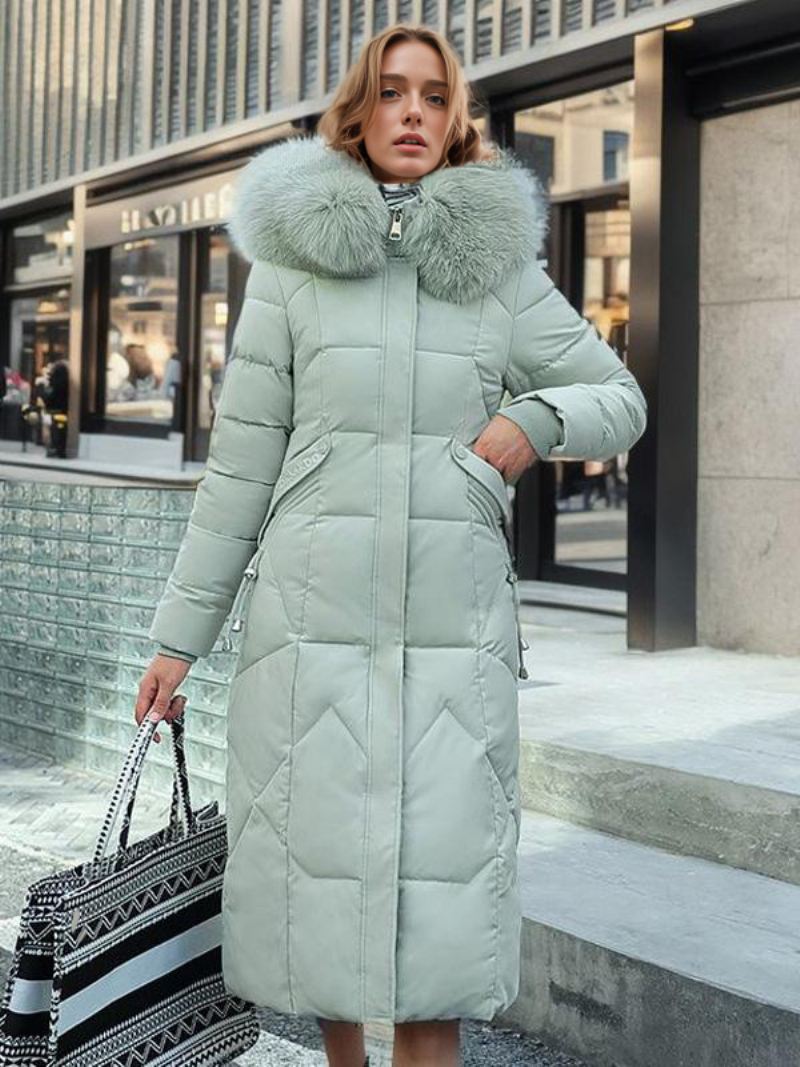 Lange Damesjas Met Capuchon Ritssluiting Capuchon. Kwalitatieve Casual Winterbovenkleding