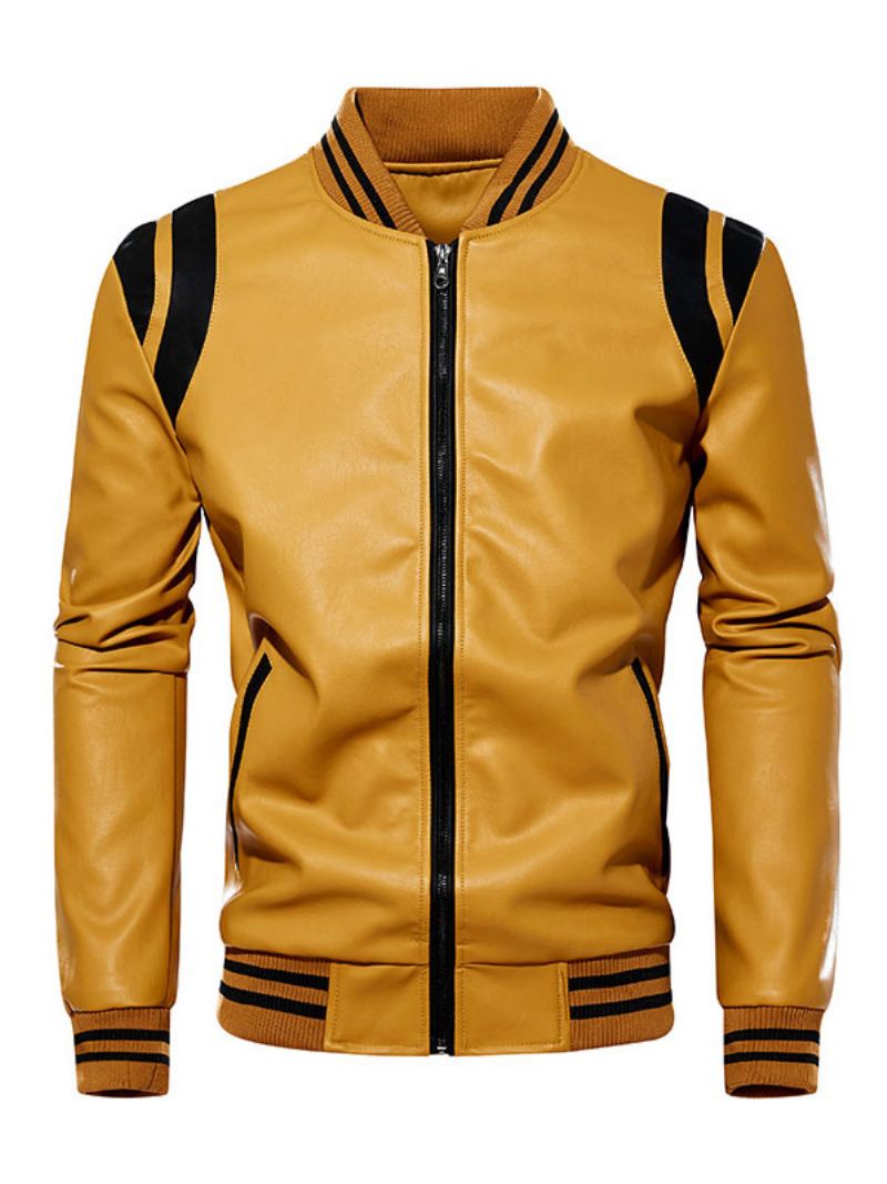 Leren Herenjassen Kleurblok Rits Pu-leer Dikker Stijlvol Moto Gelaagd Zwart