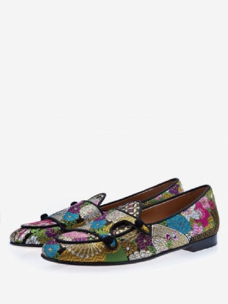 Loaferschoenen Heren Instappers Kwastjes Visprint Vierkante Neus Bovenwerk Slangenleer Feest Bruiloft Promschoenen