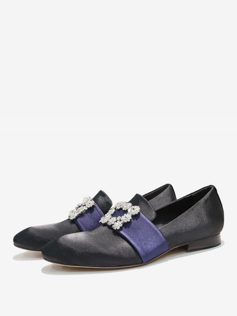 Loaferschoenen Heren Satijn Ronde Neus Suède Kristalsteentjes Slip-on-jurk Galafeest Trouwschoenen