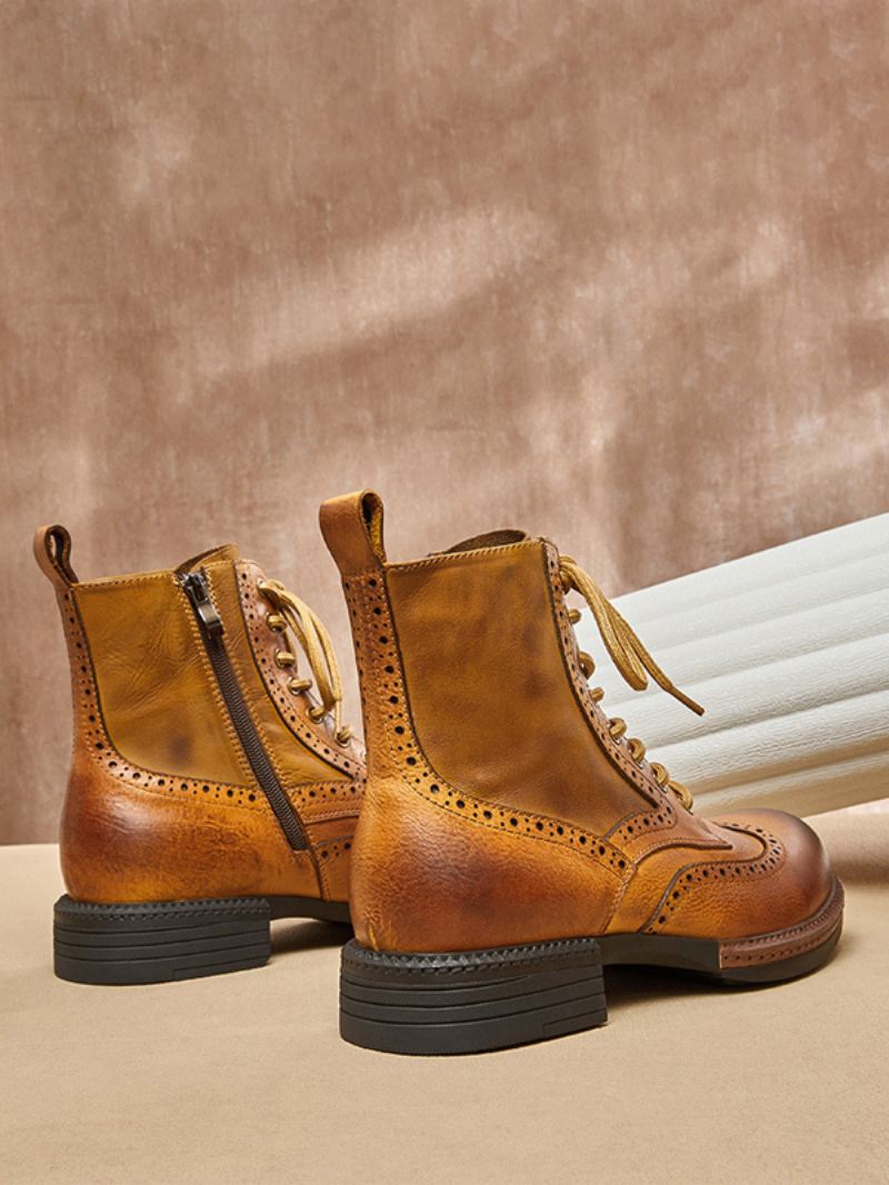 Martin Brogue Business Casual Retro Koffiebruine Koeienhuid Korte Laarzen Met Ronde Neus Heren