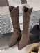 Micro Suède Hoge Puntige Neus Dikke Hak Halfhoge Kuitlaarzen Dames