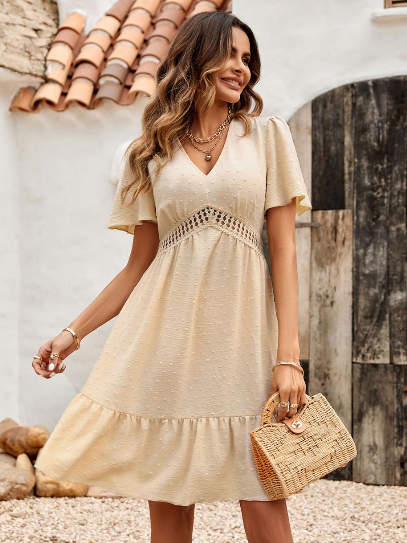 Mini-jurken Dames Lichtgroen Korte Jurk Met Mouwen