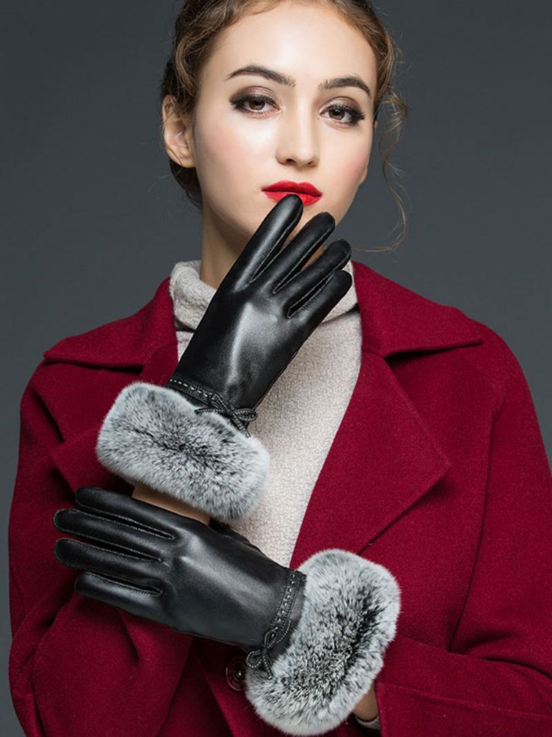 Nepbont Decor Dames Warm Verwarmd Winterleer Waterdichte Korte Handschoenen