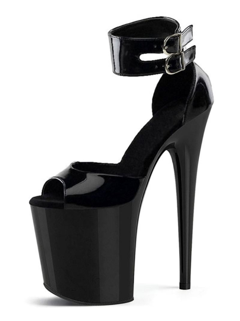 Paaldansschoenen Dames Sexy Sandalen Zwart Pu-leer Open Teen Naaldhak Hemelhoge Hak Enkelbandje Hakken Stripper Schoenen