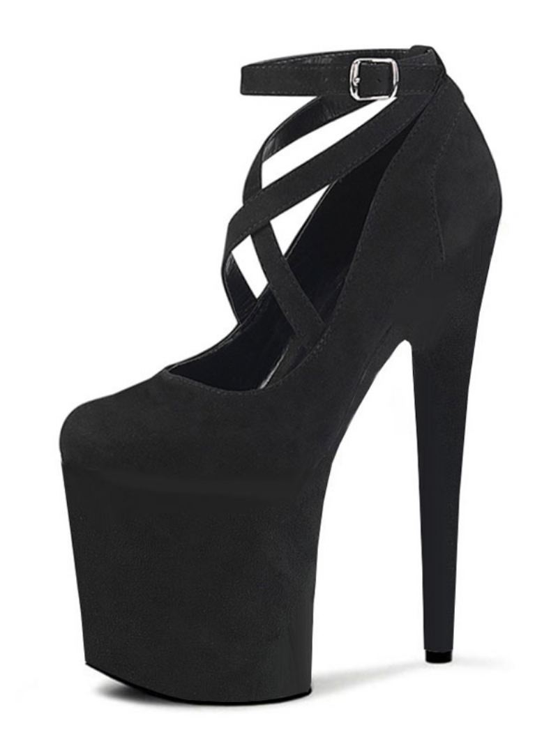 Paaldansschoenen Vrouwen Sexy Hoge Hakken Abrikoos Ronde Neus Gesp Naaldhak Sky Hak Enkelbandje Stripper Schoenen