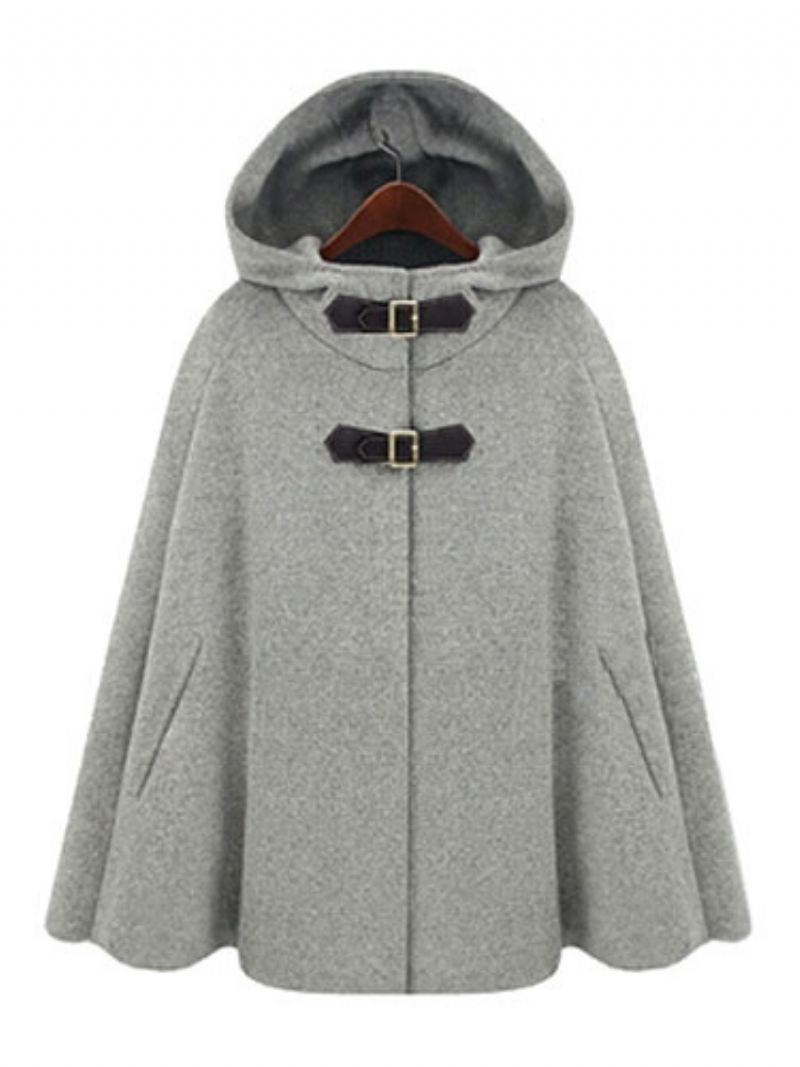 Ponchojas Dames Oversized Grijze Winterbovenkleding Met Capuchon