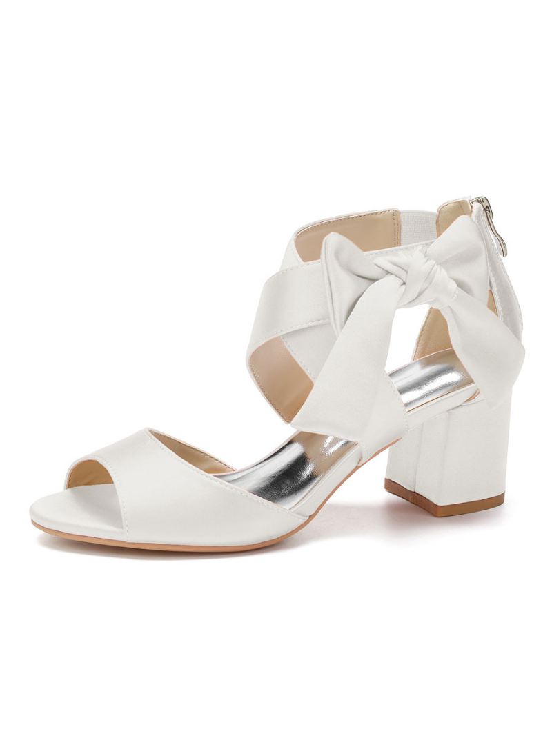 Satijnen Strik-bruidssandalen Dames Lage Hak