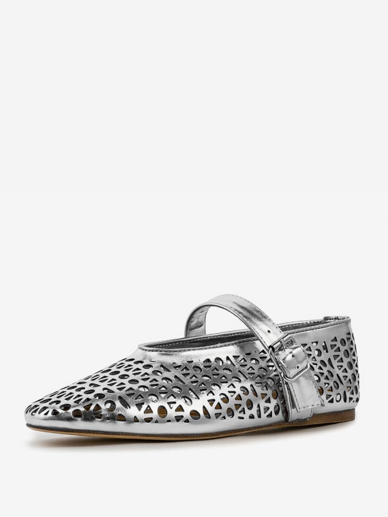 Zilveren Ballerina's Dames Met Ronde Neus Uitgesneden Gespdetail