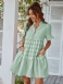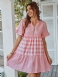 Zomerjurk Dames Geruite Ruches Knopen Korte Mouwen Casual Zomerjurken